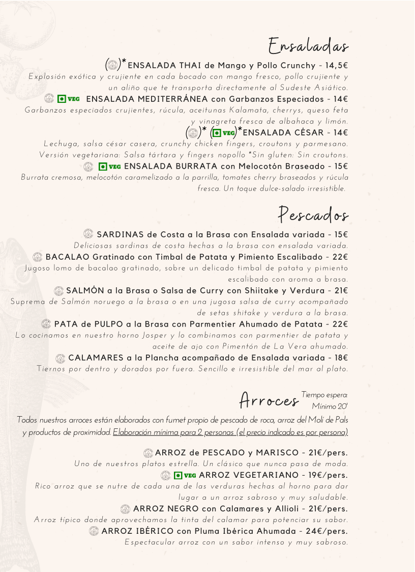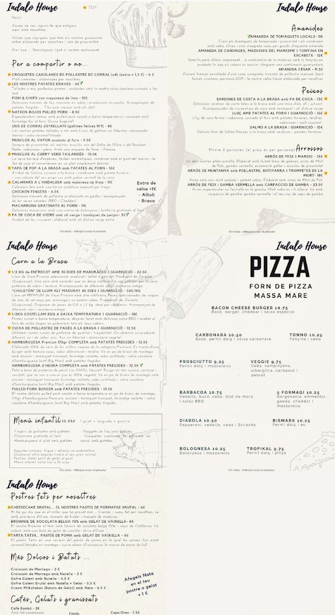 Indalo House Restaurant in Santa Susanna offers a vibrant menu that celebrates bold, authentic flavors. Their signature Arroces stand out—especially the Arroz de Pescado y Marisco, a classic seafood rice dish that perfectly captures the essence of the Mediterranean. The Arroz Negro with squid ink is another highlight, rich and deeply flavorful, while the Arroz Vegetariano charms with its healthy, oven-roasted vegetables. Pizza lovers can delight in artisanal options like the creamy 5 Quesos or the smoky Chicago Pepperoni, blending traditional and bold ingredients. Pastas, from delicate Spaghetti Linguine All'uovo to gluten-free gnocchi, come with your choice of vibrant sauces, including Bolognese and creamy 5-cheese. Complemented by friendly service and lively live music, the menu invites you to savor Spanish and Italian influences in a warm, welcoming atmosphere. Indalo House is a must-visit for those who appreciate heartfelt, well-crafted dishes with a cozy, spirited vibe.